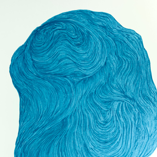 I dette verket har jeg utforsket streken og linjen fritt inne i en form, en form som flyter inn og ut av selve arket der jeg må forholde meg til papirets ytre ramme på ulike måter. Det intuitive og spontane er viktig, og tilstedeværelse i prosessen – linje for linje – uten å miste fokus.